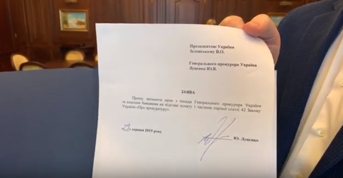 Луценко написал заявление об увольнении по собственному желанию. Фото