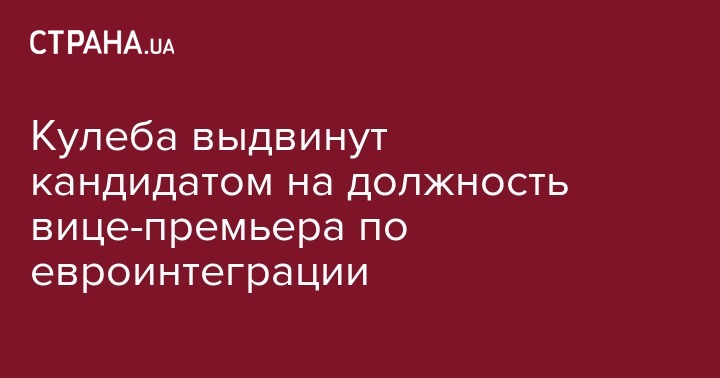 На должность вице-премьер-министра Украины по европейской интеграции в будущем Кабмине предложена кандидатура Дмитрия Кулебы. Об Этом со ссылкой на народного депутата от партии "Слуга народа" Богдана Яременко  сообщает "Интерфакс-Украина".
