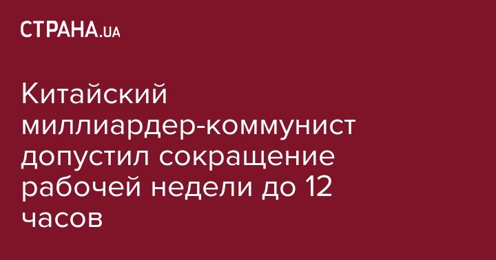 Китайский миллиардер-коммунист допустил сокращение рабочей недели до 12 часов