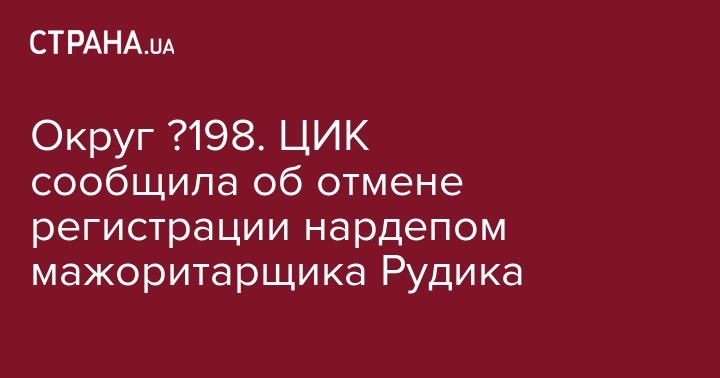 Центральная избирательная комиссия сообщает об отмене регистрации народным депутатом Украины самовыдвиженца Сергея Рудика по результатам внеочередных парламентских выборов 21 июля в одномандатном избирательном округе №198
