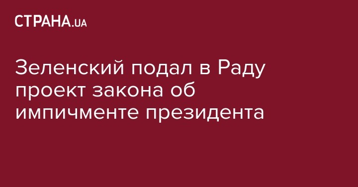 Президент Украины Владимир Зеленский внес в Верховную Раду проект закона об особой процедуре устранения президента с поста (импичмент). Об этом свидетельствует соответствующий раздел на сайте украинского парламента.