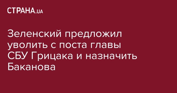 Зеленский предложил уволить с поста главы СБУ Грицака и назначить Баканова