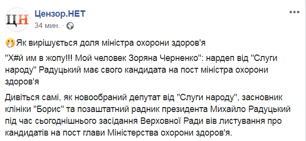 "Х@й им в ж@у". "Слуга народа" Радуцкий в переписке объяснил, что новым главой МОЗ будет его человек