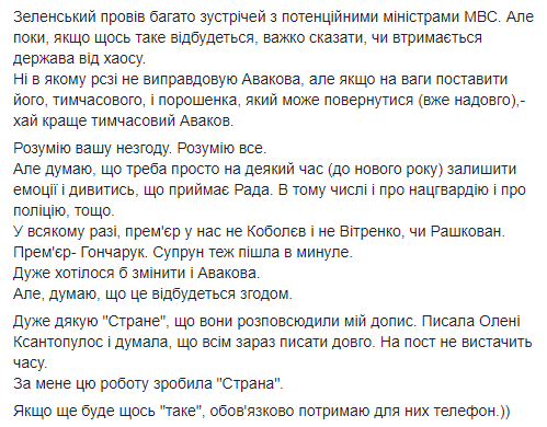 "Для меня практически нет разницы между ним и Порошенко. Но благодаря тому, что он не вступил в сговор с Петром, мы сейчас не имеем президента Порошенко, не имеем спикера Медведчука, не имеем премьера Бойко и не имеем Порохо-большинства в Раде. Зеленский провел много встреч с потенциальными министрами МВД. Но пока, если что-то такое произойдет, трудно сказать, удержится ли государство от хаоса", - заявила нардеп.