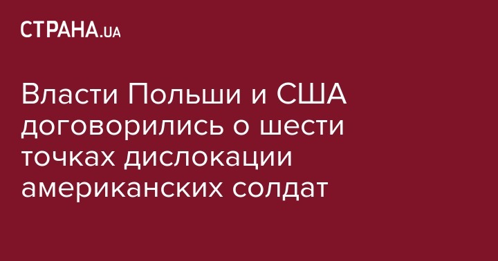 Власти Польши и США договорились о шести точках дислокации дополнительных американских войск в Польше. Переговоры о еще одном месте еще ведутся.