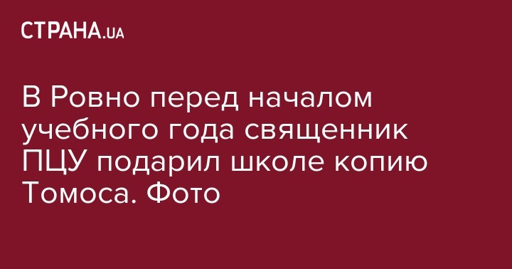 В Ровно накануне начала нового учебного года коллектив средней школы №13 получил в подарок копию Томоса об автокефальной Православной церкви Украины (ПЦУ). Подарок школе вручил священнослужитель ПЦУ Гавриил Кризина. б этом он сообщил на своей странице в соцсети и опубликовал подтверждающие его слова фото.