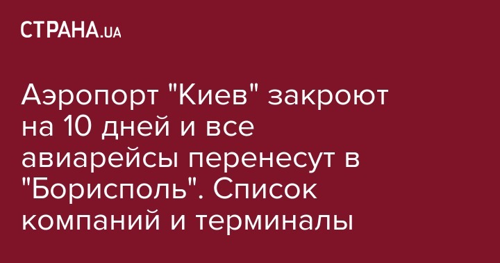 Аэропорт "Киев" закроют на 10 дней и все авиарейсы перенесут в "Борисполь". Список компаний и терминалы