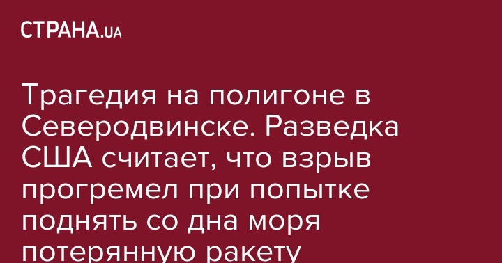 Американская разведка предоставила свой доклад, в котором содержится новая информация о таинственном и смертоносном взрыве на ракетном полигоне в Северодвинске (Архангельская область на севере России - Ред.).