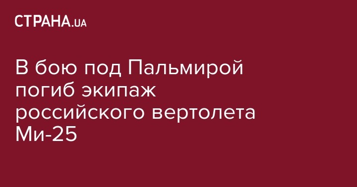 В бою под Пальмирой погиб экипаж российского вертолета Ми-25