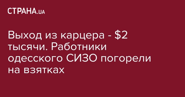 Выход из карцера - $2 тысячи. Работники одесского СИЗО погорели на взятках