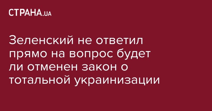 Президент Украины Владимир Зеленский не ответил на вопрос будет ли отменен закон о языке (или, как его еще называют, закон о тотальной украинизации), который был принят прежним составом парламента и вызвал обвинения в ущемлении прав русскоязычного населения и национальных меньшинств.