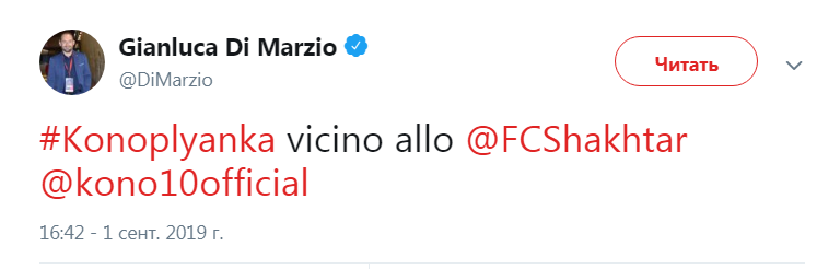 По информации Ди Марцио, Шахтер хочет заполучить Коноплянку сегодня, накануне закрытия в Европе трансферного окна.