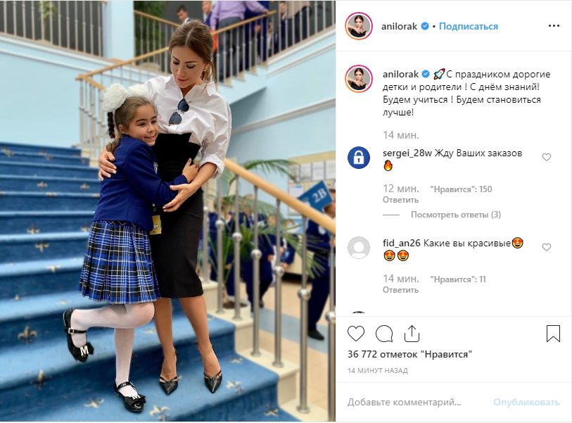 Певица Ани Лорак опубликовала фото с дочерью Софией, которая пошла во второй класс, и поздравила всех детей и их родителей: "С днём знаний! Будем учиться! Будем становиться лучше!"