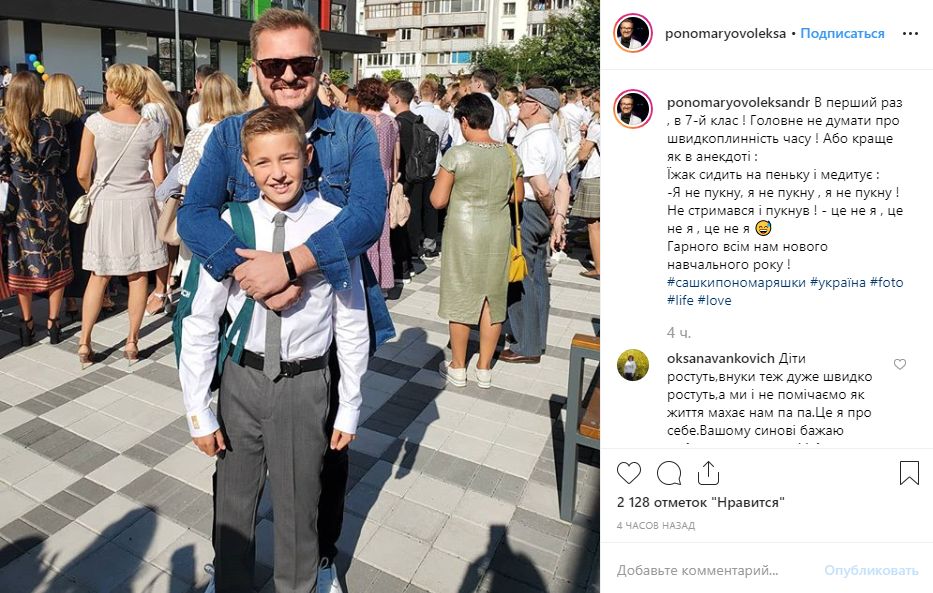 Певец Александр Пономарев отвел 12-летнего сына Сашу в седьмой класс и рассказал детский анекдот про ежика. Саша - второй ребенок Пономарева от брака с Викторией Мартынюк, с которой он развелся 8 лет назад. У певца также есть 21-летняя дочь Женя, которая родилась в гражданском браке с Аленой Мозговой.