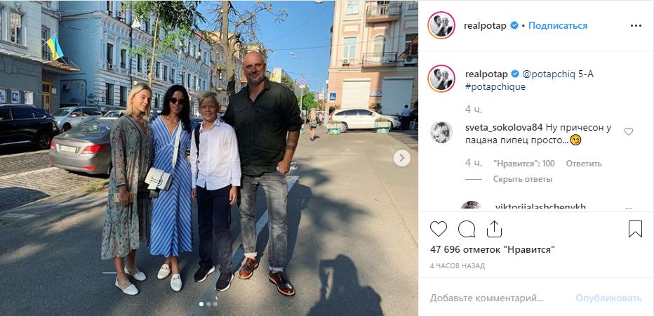 Фотографию с сыном опубликовал певец и продюсер Потап (Алексей Потапенко). Андрей Потапенко - сын музыканта от первого брака с Ириной Горовой. Она и ее дочь Наташа также пришли отвести мальчика в школу. Кстати, на этой неделе у школьника день рождения - 6 сентября ему исполнится 11 лет.