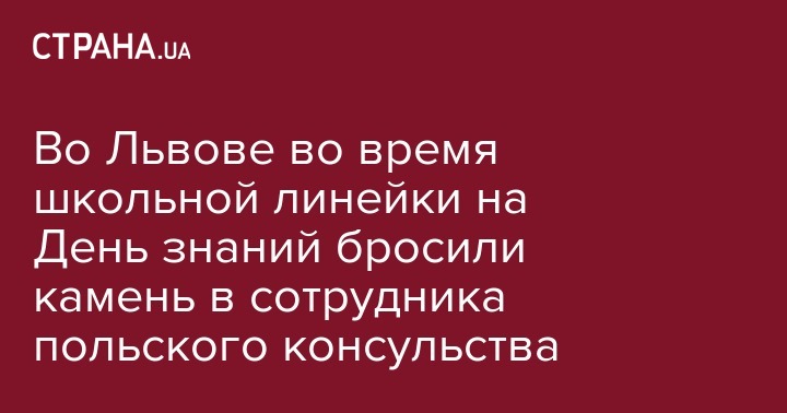 2 сентября в львовской школе №24 имени Марии Конопницкой во время торжеств в честь Дня знаний неизвестные бросили небольшой камень, попавший в представителя польского консульства. Об этом сообщает Zaxid.net.