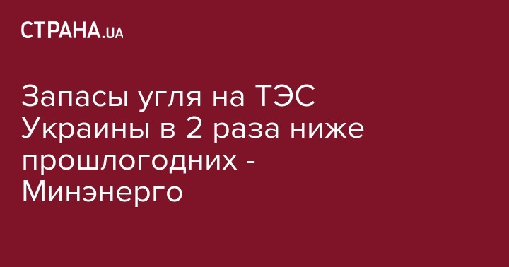 Запасы угля на складах тепловых электростанций энергогенерирующих компаний (ГК ТЭС) Украины по состоянию на 2 сентября составляют 688,4 тыс. тонн, что в 2,2 раза (на 885,1 тыс. тонн) ниже прошлогодних. Об этом свидетельствуют данные Министерства энергетики и угольной промышленности, передает Интерфакс-Украина.