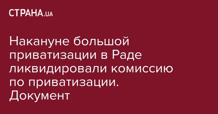 Накануне большой приватизации в Раде ликвидировали комиссию по приватизации. Документ