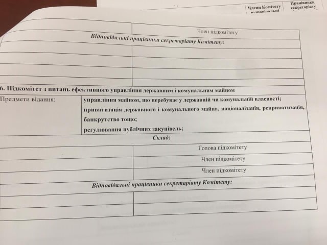 Полномочия парламентской специальной контрольной комиссии по по вопросам приватизации были переданы подкомитету с новым названием "Подкомитет с эффективного управления государственным и коммунальным имуществом". Подкомитет вошел в комитет "Экономического развития", возглавляемый представителем партии "Слуга Народа" Дмитрием Наталухой. Об этом "Стране" стало известно из собственных источников в парламенте.