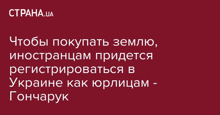 Он заявил, что иностранные граждане и компании смогут купить земельный участок только после регистрации юридического лица в Украине. Об этом Алексей Гончарук сообщил в прямом эфире программы "Свобода слова" на телеканале ICTV.