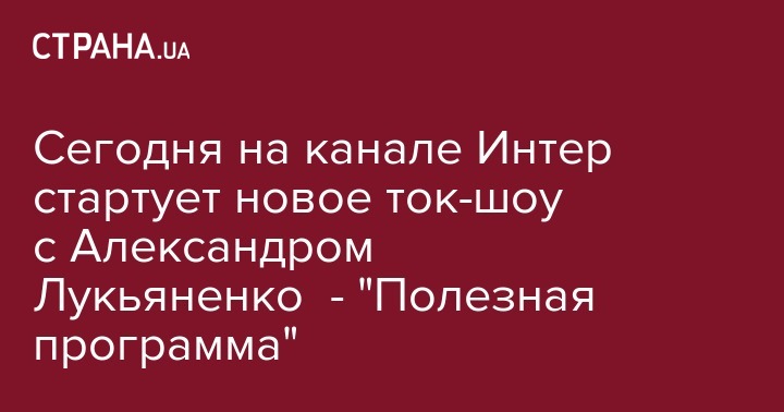 Сегодня на канале Интер стартует новое ток-шоу с Александром Лукьяненко - "Полезная программа"