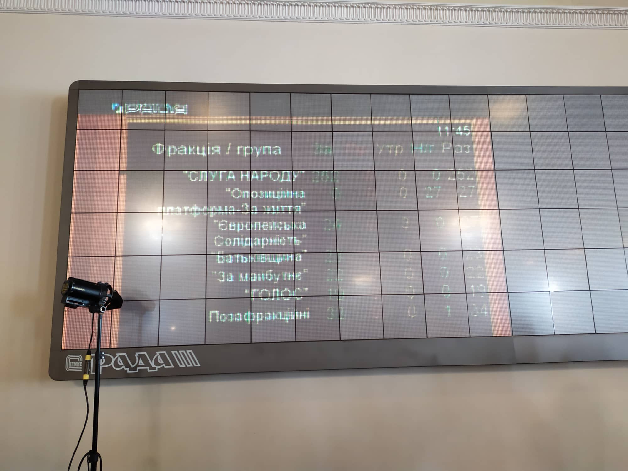 Отметим, что в Раду сегодня так же прибыл президент Владимир Зеленский, и в присутствии главы государства в зале зарегистрировались 393 нардепа. Для принятия закона необходимо было не менее 300 голосов нардепов.