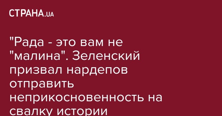 "Рада - это вам не "малина". Зеленский призвал нардепов отправить неприкосновенность на свалку истории