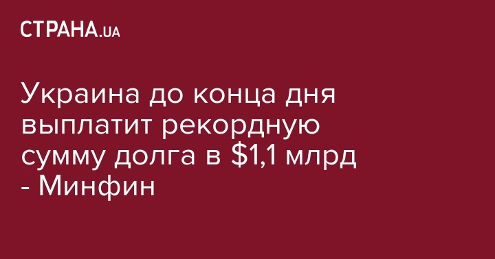 Украина до конца дня выплатит рекордную сумму долга в $1,1 млрд - Минфин