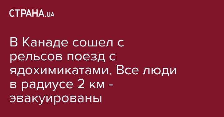 Во вторник, 3 сентября, в Канаде с рельсов сошел поезд, перевозивший ядовитые химикаты. Об этом сообщает CBC News.