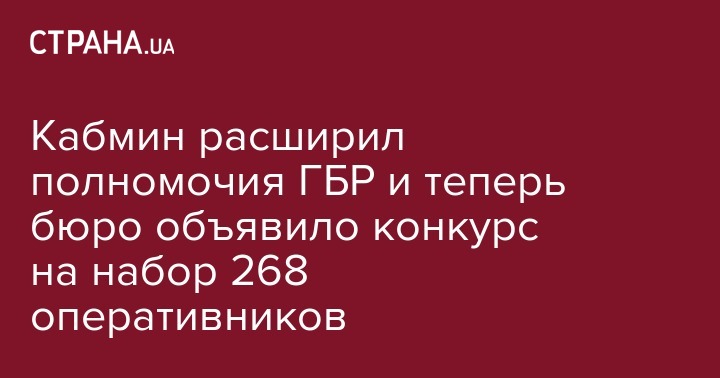 Кабинет министров утвердил необходимые документы для расширения полномочий Государственного бюро расследований и теперь в структуре объявили конкурс на набор 268 оперативны работников. Об этом в своем Telegram-канале сообщил директор ГБР Роман Труба.