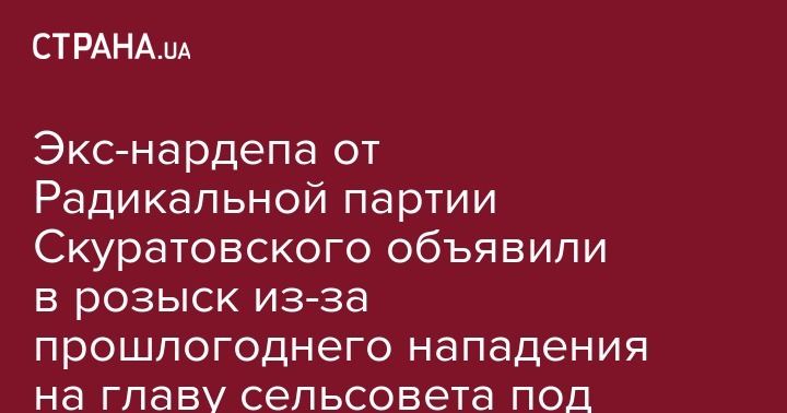 Прокуратура Киевской области сообщила о подозрении экс-нардепу от Радикальной партии Олега Ляшко Сергею Скуратовскому, который в 2018 году вступил в конфликт с главой Плахтянского сельсовета Киевщины Александром Сорочаном и нанес ему телесные повреждения. Об этом сообщает пресс-служба Прокуратуры Киева.
