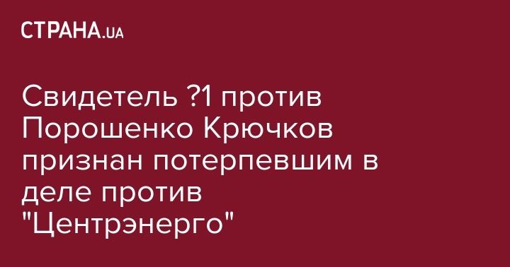 Экс-нардеп Дмитрий Крючков, свидетель №1 против Петра Порошенко в деле о формуле Роттердам+ был признан потерпевшим в качестве бенефициара ООО "Баланс груп" в деле против ПАО "Центрэнерго" (уголовное производство от 20 мая 2019 года). Об этом сообщает "Экономическая правда".