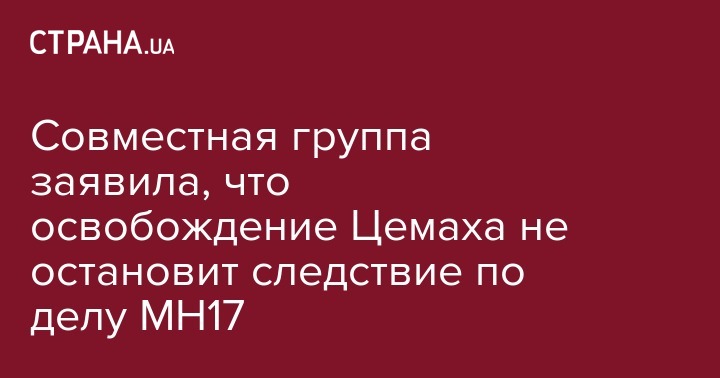 То, что 5 сентября руководителя ПВО т.н. "ДНР" Владимира Цемаха, которого называют ключевым свидетелем по делу о сбитом на небом Донбасса малазийским Боингом МН-17, отпустили на свободу, не остановит следствие об обстоятельствах трагедии. Об этом со ссылкой на пресс-секретаря Совместной следственной группы (JIT, ССГ) Брехтье ван де Мосдейка сообщает "Радiо Свобода".