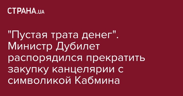 Министр Кабинета министров Дмитрий Дубилет поручил прекратить закупку секретариатом правительства канцелярских предметов с символикой Кабмина. Об этом он сообщил на своей странице в Instagram.