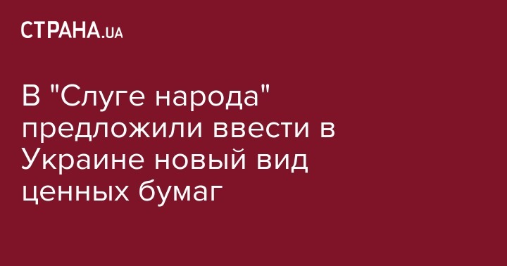 В "Слуге народа" предложили ввести в Украине новый вид ценных бумаг