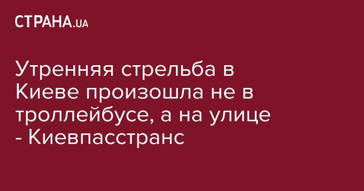 Стрельба утром 6 сентября на улице Федорова в Киеве произошла не в троллейбусе, а на улице. Об этом в Facebook сообщила пресс-служба КП "Киевпасстранс".