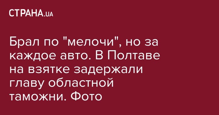 "Установлено, что начальник Полтавской таможни в начале мая 2019 года выдвинул субъекту внешнеэкономической деятельности требование о передаче ему денежных средств за беспрепятственное проведение таможенных формальностей из расчета 400 долларов США за один растаможенный автомобиль с грузом в зоне деятельности возглавляемой им таможни. 7 сентября 2019 года вымогатель в Киеве получил "вознаграждение" за 10 оформленных контейнеров - 4000 долларов США, что задокументировано в рамках контроля за совершением преступления", - сказано в сообщении.