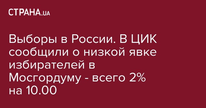 Агентство "Интерфакс" отмечает, что по данным на 10:00, явка избирателей на выборах в Мосгордуму составляет около 2%.