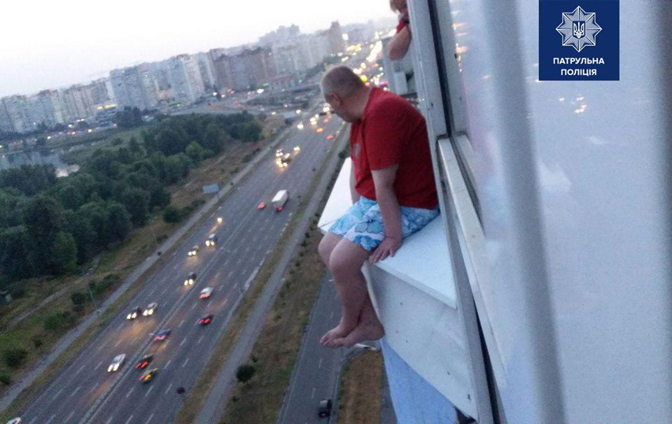 В столице на проспекте Бажана житель одной из квартир, расположенной на 17 этаже, вылез в окно и приготовился прыгать вниз. Ему помешала жена, позвонившая в службу "102".
