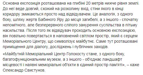 "Именно они построят первый в Киеве и Восточной Европе мемориальный Центр трагедии Холокоста, расположенный как раз в том месте, где произошли трагические события в 1941-1943 годах. Концепция проекта построена вокруг центра экспозиции, архитектурное решение которой позволит посетителям на себе почувствовать ту опасность и беспросветность, которые окружили жертв Холокоста во время тех трагических событий", - сообщает пресс-служба.