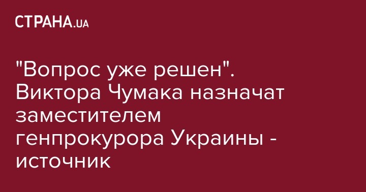 "Чумак будет заместителем", - сообщил источник. По его словам, вопрос уже решен и приказ о назначении будет подписан в ближайшее время, возможно даже во вторник, 11 сентября. При этом не уточняется, какое направление будет курировать Чумак.