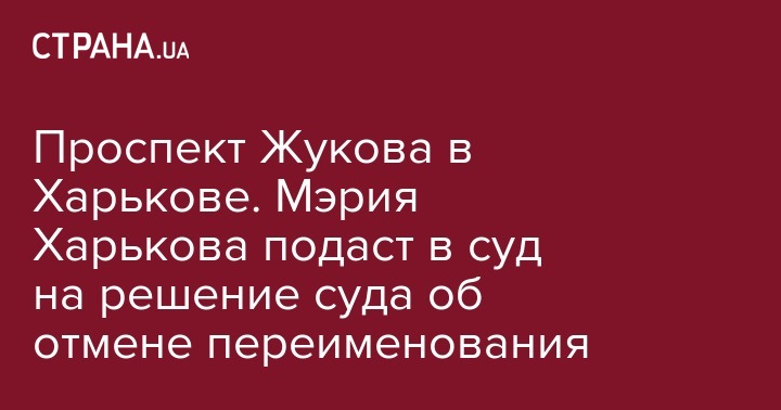 "Первое. Мы будем подавать апелляционную жалобу на решение Харьковского окружного суда о якобы противоправном возвращении проспекту имени Жукова. Второе. Мы будем настаивать на том, что имели право вернуть его имя проспекту именно в рамках так называемого "Закона о декоммунизации", поскольку Георгий Жуков был одним из ключевых военачальников, освобождавших Украину от нацизма", - поделился планами Кернес.