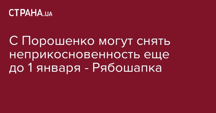 Таким образом Рябошапка дал понять, что намерен подать в Верховную Раду представление на снятие неприкосновенности с нескольких депутатов (в том числе и с Петра Порошенко) еще до 1 января 2020 года, когда вступят в силу изменения к Конституции об отмене депутатского иммунитета.