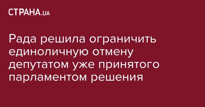 Уточняется, что сейчас народные депутаты могут инициировать отмену принятого ранее решения. В случае принятия закона, один депутат не сможет регистрировать соответствующий проект постановления, это смогут делать не менее 150 народных депутатов.