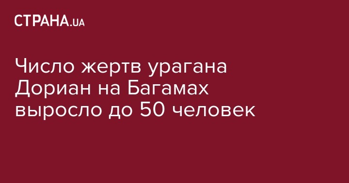 На Багамских островах спасатели продолжают поиски тел погибших в результате налета урагана Дориан. По данным на 10 сентября из-под завалов домов и строений были извлечены тела уже 50 человек. Об этом сообщает The New York Post  со ссылкой на полицию страны.