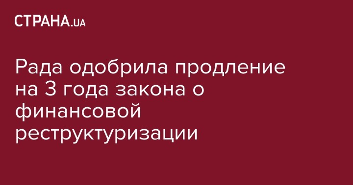 Верховная Рада приняла за основу законопроект №1070, который предлагает продлить еще на три года действие закона "О финансовой реструктуризации", утрачивающий силу 19 октября 2019 года. За соответствующее решение проголосовало 302 народных депутата при необходимых 226 голосах, передает "Интерфакс-Украина".