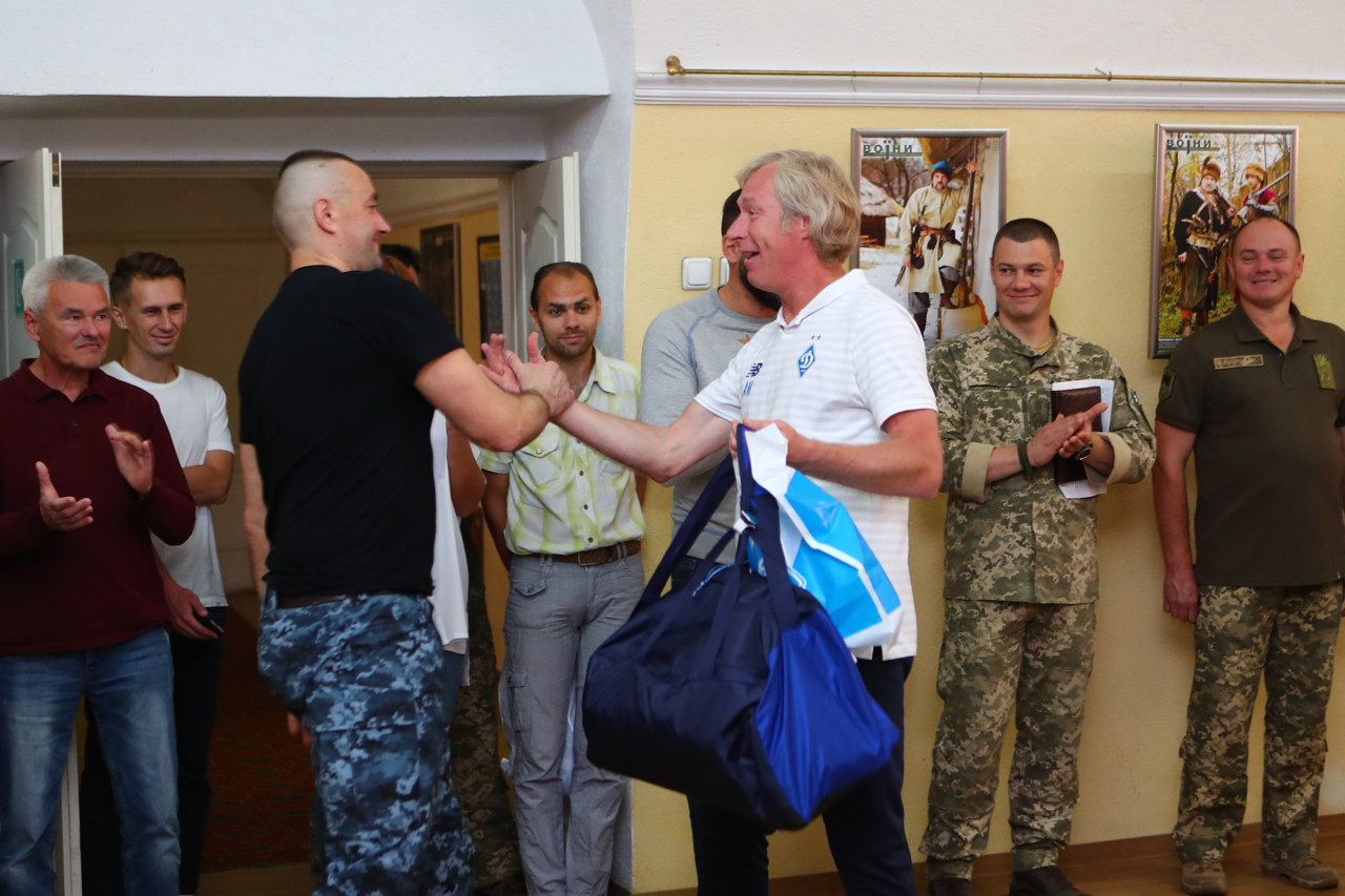 В центральный военный госпиталь приехала основа Динамо в полном составе за исключением игроков сборных, а также тренерский штаб "бело-синих" во главе с Алексеем Михайличенко. Вместе с командой в госпиталь приехал и легендарный игрок киевского клуба Владимир Мунтян, а также представители фан-клуба.