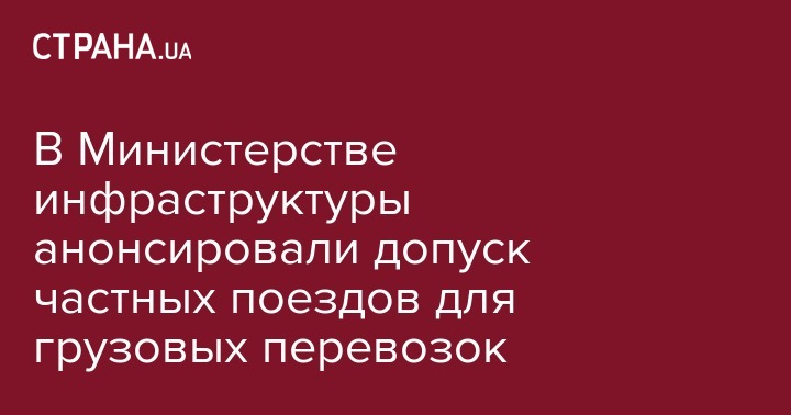 В Министерстве инфраструктуры намерены запустить пилотный проект по допуску частных, негосударственных поездов на железную дорогу для осуществления грузовых перевозок. Они могут начать работу на пробном участке уже до конца 2019 года.