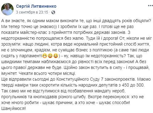 Примечательно, что ранее Литвиненко опубликовал пост в Facebook, где отметил, что "Слуга народа" введет лишение нардепа мандата за это нарушение.