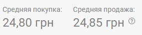 По состоянию на 17:15 курс выровнялся: покупка 24,80 грн, продажа 24,85 грн.